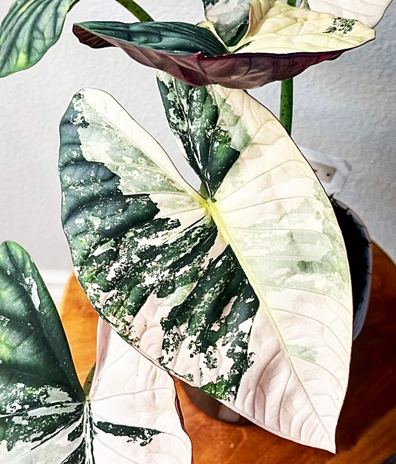 アロカシアの中でも人気が高い「Nebula(ネブラ)」のアルボ斑入り(Var. Albo)。
